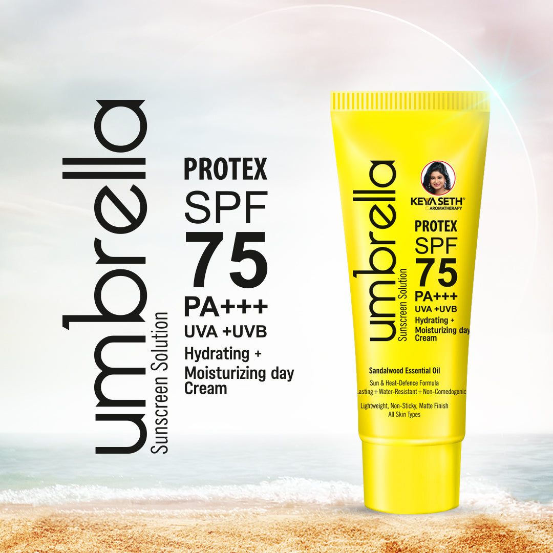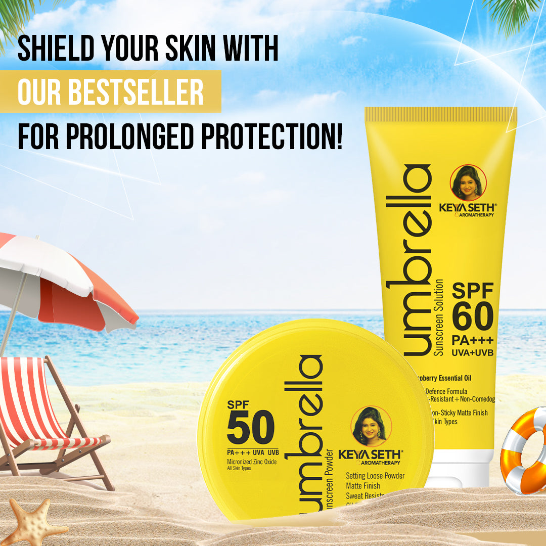 Start your day with the Umbrella Sunscreen Solution SPF 60—a lightweight, non-greasy formula offering broad-spectrum protection against UVA, UVB, and blue light. Infused with natural sun-shielding raspberry oil, advanced UV filters like Tinosorb M & S, and hydrating ingredients, it protects, nourishes, and helps prevent tanning, dryness, and premature ageing—leaving a smooth, matte, no white-cast finish.